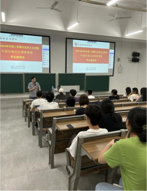 5月10日下午在总结第一阶段集体备课会和收集学生建议的基础上,教研室推举王婕老师举行《中国近现代史纲要》公开课,教研室所有无课教师集体观摩并展开评议,进而,我们针对王老师的教学设计并结合自己的课堂教学实践开展第二阶段集体备课会,围绕教学内容、课堂设计、教学方法等议题,就课堂教学的理论性和生动性之间的张力、AI时代思政课的教学发展趋势等方面进行深入探讨。会议由陈世柏副院长主持。
