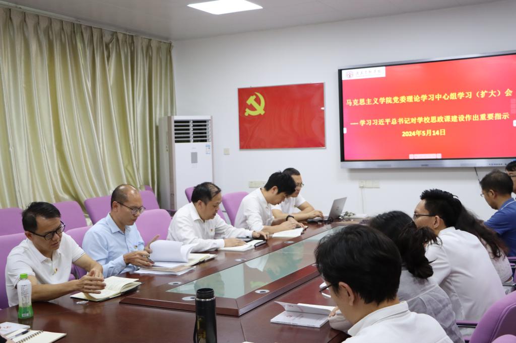 5月14日下午,学院召开党委理论学习中心组学习(扩大)会,专题传达学习习近平总书记对学校思政课建设作出的重要指示和新时代学校思政课建设推进会精神。