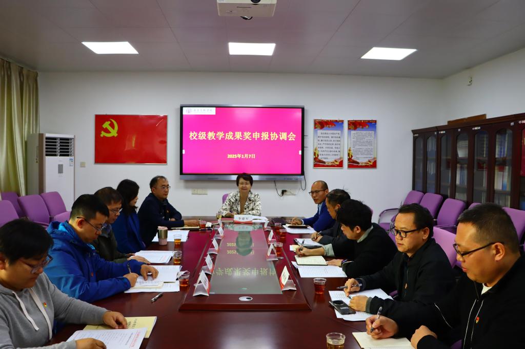在学校启动2024~2025学年省级教学成果奖培育项目申报暨校级教学成果奖评选工作之际,为做好教学成果奖申报推荐工作,2025年1月7日,学院召开校级教学成果奖申报协调会。学校党委书记李建军亲临指导,党委办公室范宜波主任、学院班子成员、非班子成员党委委员、教研室主任代表等参加会议。