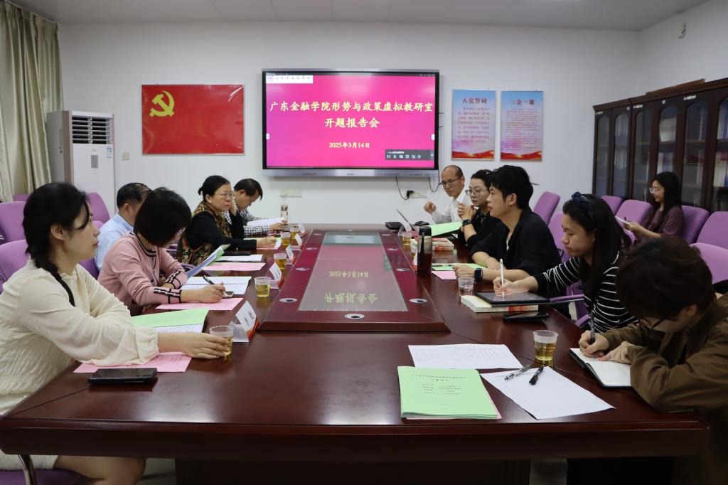 项目负责人陈学文汇报形势与政策虚拟教研室的总体情况,并介绍了红色金融特色专题的建设情况,项目主要成员对形势与政策虚拟教研室的建设思路和计划进行了汇报。