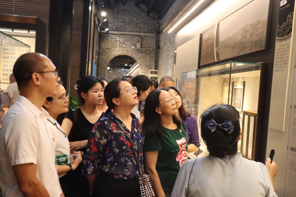 在讲解员的带领下,党员们逐一参观了博物馆货币、银行、传统金融、证券、保险、对外金融、广州金融等七大展厅,了解岭南金融史上重要史实、事件、人物及相关文物,尤其是共产党在岭南地区筚路蓝缕的红色金融之路,在一幅幅珍藏的历史图片和一件件珍贵历史文物中,深切感悟到岭南金融事业发展壮大背后催人奋进的精神力量。