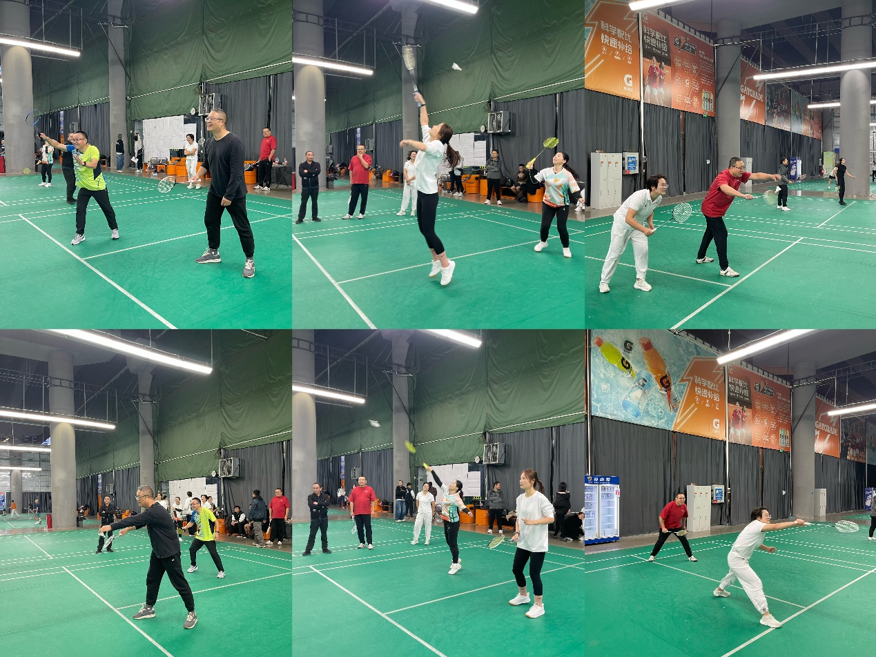 比赛当天,首轮分组循环赛学院与上届“冠军队”交手,虽然对手十分强劲,但队员们依然奋力拼搏,配合默契、攻防有序,无论是精准发球、凌厉扣杀,还是巧妙的网前截击,都展现出扎实的运动功底与良好的竞技状态,每一场对决都扣人心弦,看点十足,赢得场下观众阵阵喝彩和掌声,整个赛场氛围热烈有序,充分彰显了“友谊第一,比赛第二”的体育风尚,充分展现学院教职工的运动风采。