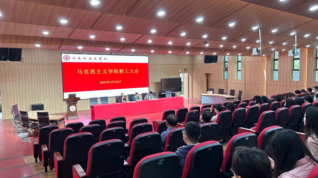 学院院长邹国振总结了去年学院的工作并对2023年重点工作进行部署。他指出,过去的一年,学院在学校党委的领导下,全面贯彻习近平新时代中国特色社会主义思想,坚持“政治建院、人才强院、教学立院、科研兴院、服务昌院”发展战略,以疫情防控、党建教学科研服务为重点,持续深化改革推动学院事业高质量发展,顺利完成了学院全年各项工作任务。邹国振强调,马克思主义是我国大学最鲜亮的底色,我们要坚持以习近平新时代中国特色社会主义思想为指导,深入学习宣传贯彻党的二十大精神,始终秉持“马院姓马、在马言马”的办院原则,坚持正确方向、坚持铸魂育人、坚持守正创新、坚持系统谋划,落实立德树人根本任务,加强思政课教学、加强教师队伍建设、加强学科建设、加强科学研究,推动学院高质量内涵式发展,为推进新时代yl6809永利官网集团建设而团结奋斗。