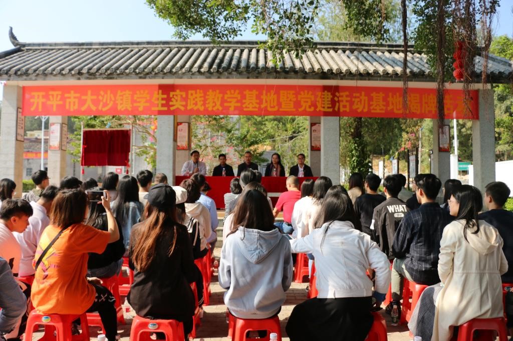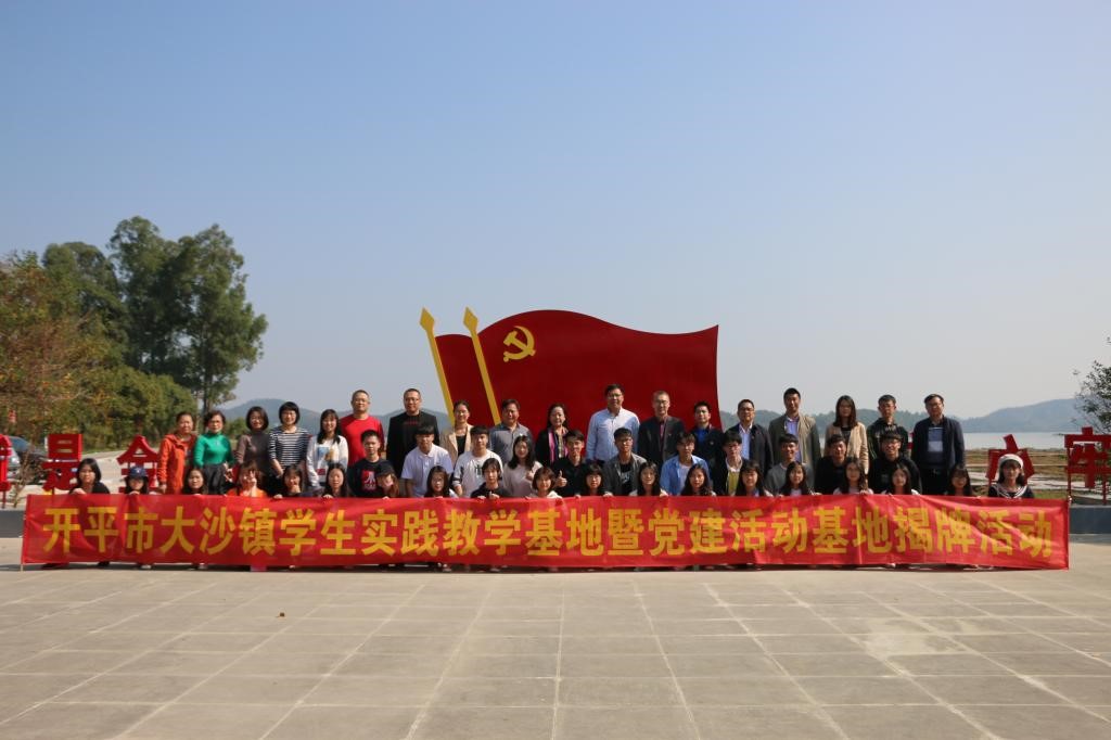 2020年1月8日,我校yl6809永利官网集团、互联网金融与信息工程学院、工商管理学院共50多名师生,在yl6809永利官网集团院长杨明、党总支书记曾英杰,互联网金融与信息工程学院党总支书记王汉强,工商管理学院党总支书记宋艳坤带领下赴江门开平市大沙镇,与大沙镇党委共同举行“大学生思政课实践教学基地暨党建共建基地”揭牌仪式,并在开平市大沙镇、塘口镇等地开展为期两天的党建研学活动。