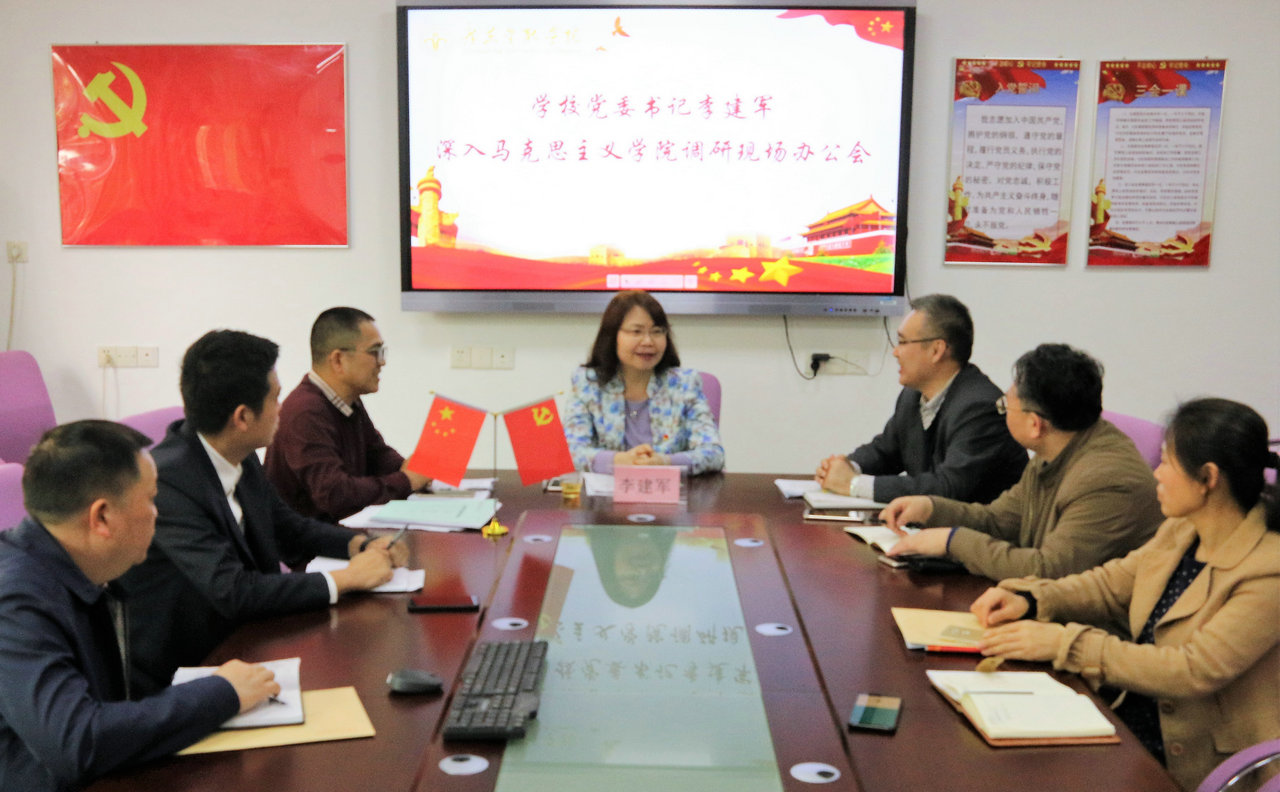 3月12日下午,学校党委书记李建军到yl6809永利官网集团调研并召开现场办公会,就推进习近平新时代中国特色社会主义思想“五进”工作、落实全国高校思想政治工作会议精神,加强和改进思想政治理论课建设、马克思主义理论学科建设、yl6809永利官网集团建设等进行了专题调研并召开现场办公会。yl6809永利官网集团党政领导班子成员和全体教职员工参加了调研会,全体党政领导班子成员、教研室主任及教师代表参加了现场办公会。