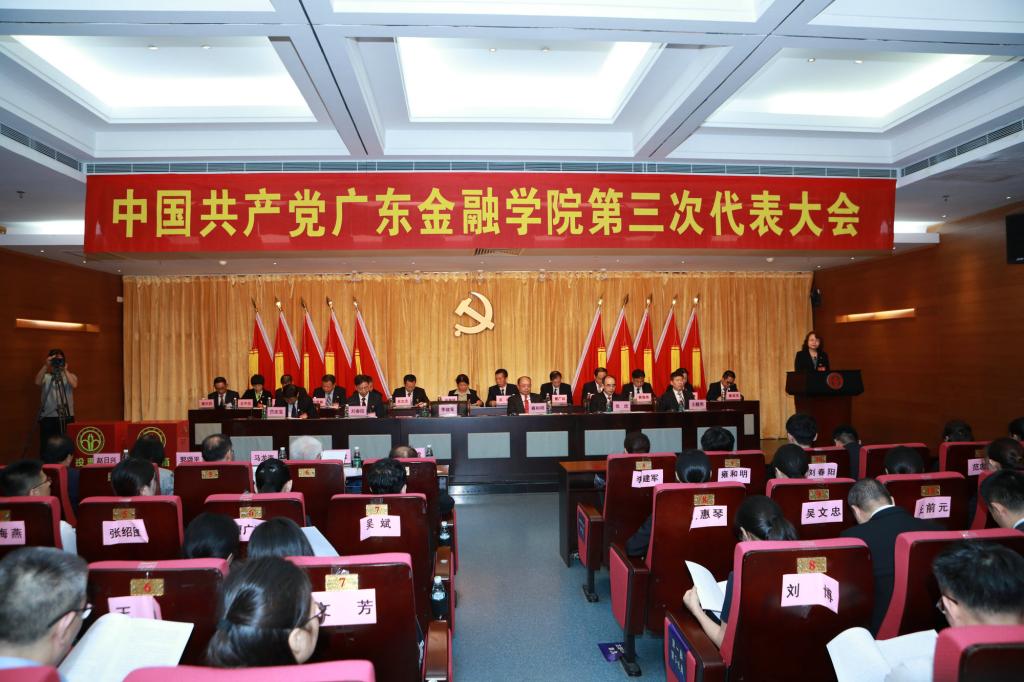 大会的主题是:高举习近平新时代中国特色社会主义思想伟大旗帜,深入贯彻落实党的十九大精神,深入贯彻落实全国教育大会精神和习近平总书记对广东重要讲话和重要指示批示精神,全面落实“立德树人”根本任务,全面推进党的建设伟大工程,坚持优结构、上层次、提质量、强特色、促创新、谋发展,抢抓粤港澳大湾区和广东金融强省建设的战略机遇,凝心聚力,开拓进取,为把学校建设成为国内知名的应用型金融品牌大学而努力奋斗!