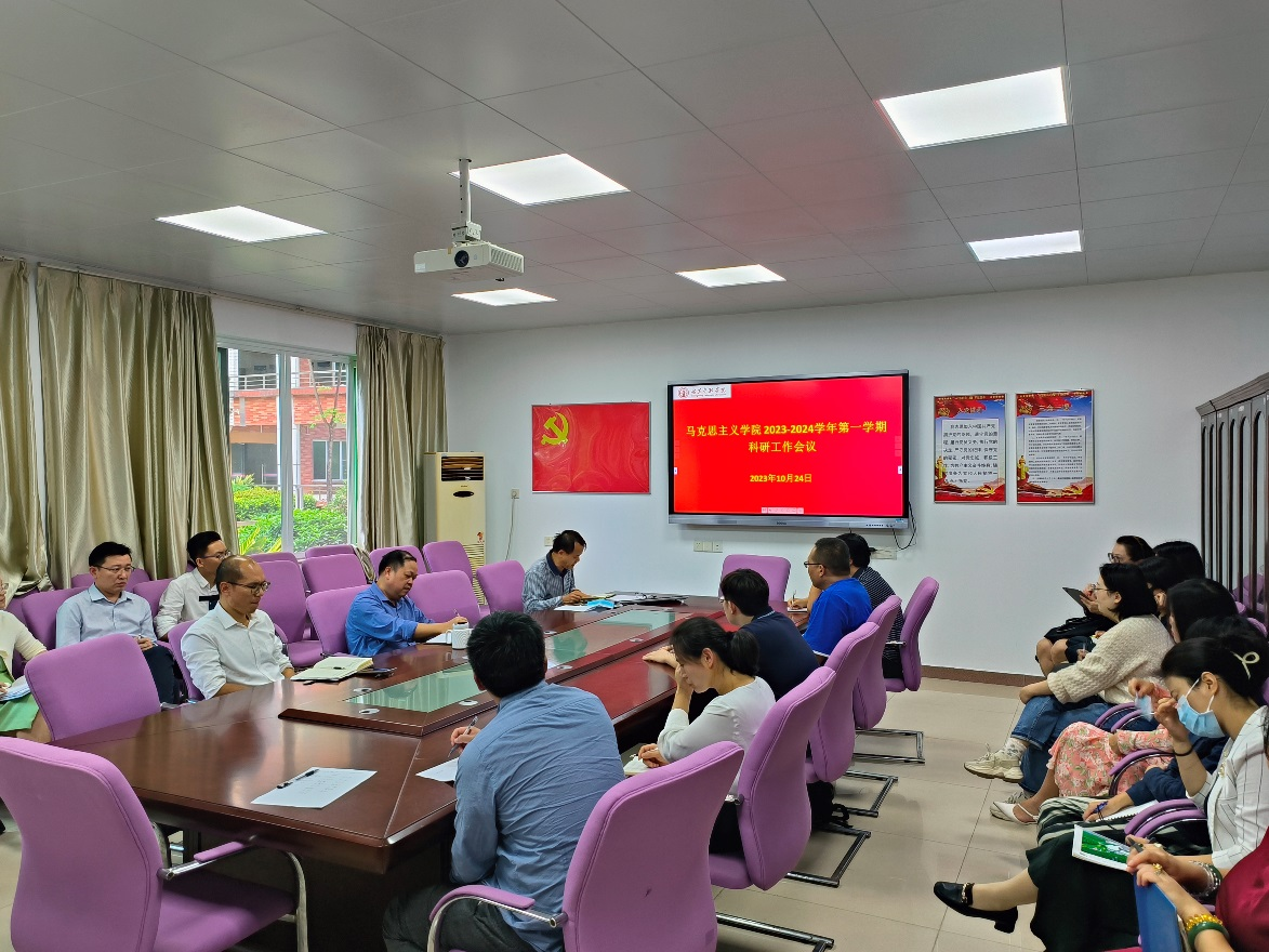 副院长陈世柏传达了学校科研工作会议精神,汇报了yl6809永利官网集团2022、2023年科研项目申报、立项以及科研成果的发表情况,并做了2024年国家社科、教育部项目申报的思想动员工作,并鼓励青年博士、学术骨干签订科研愿景。
