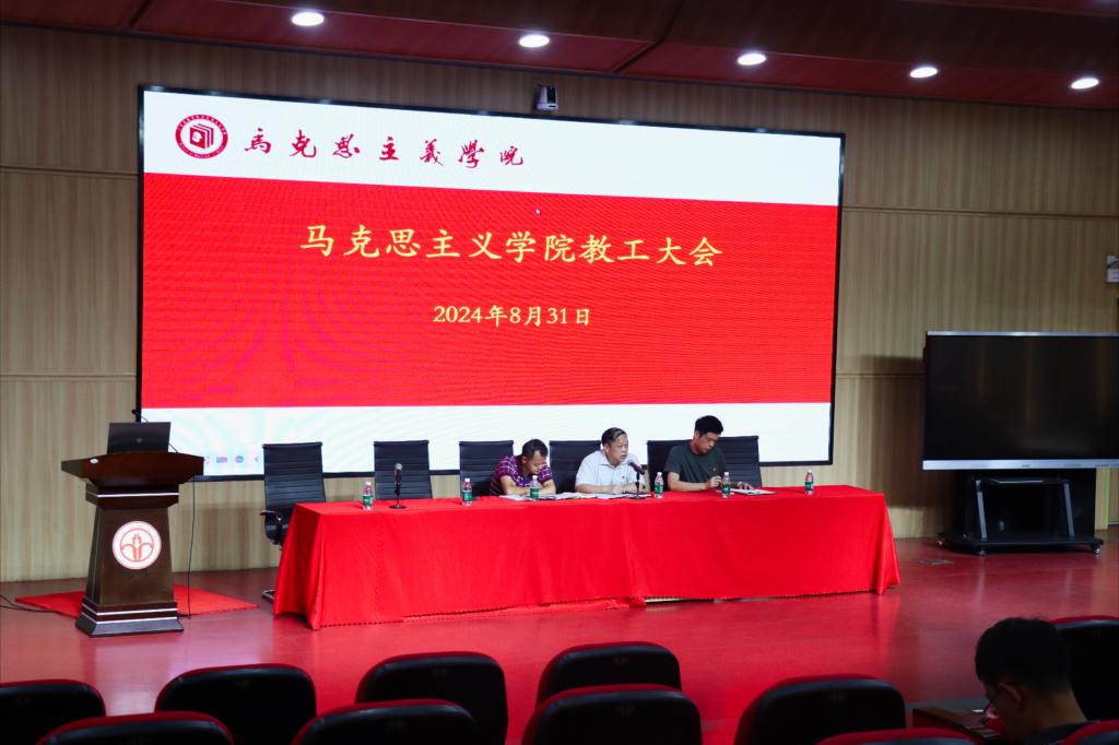 为了做好新学期开学各项准备工作,提高教学质量,加强师资队伍建设,yl6809永利官网集团于2024年8月31日上午在马克思主义理论实验中心召开新学期教职工大会,总结上一学期的工作成绩,推动开展新学期教学、科研和社会服务等各项工作。会议由院长邹国振主持,全体老师参加会议。
