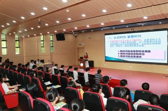 授课中,李建军指出,中国特色社会主义进入了新时代,是党的十九大做出的一个重大政治判断,青年学生必须从历史和现实、理论和实践、国内和国际等角度思考这一重要论断,并且从新时代的历史依据和现实依据、根本标志和历史使命等方面,引导青年学生认清我国发展新的历史方位和时代坐标。然后,她用图文并茂的方式,带领青年学生回顾学习我们党带领中华民族“站起来、富起来、强起来”的发展历程,着重学习十八大以来,在以习近平同志为核心的党中央坚强领导下,改革开放和社会主义现代化建设取得的历史性成就和历史性变革:经济建设取得重大成就、全面深化改革取得重大突破、民主法治建设迈出重大步伐、思想文化建设取得重大进展、人民生活不断改善、生态文明建设成效显著、强军兴军开创新局面、港澳台工作取得新进展、全方位外交布局深入展开、全面从严治党成效显著。李建军指出,这些全方位的开创性的成就和深层次的根本性的变革意味着科学社会主义在21世纪的中国焕发出了强大的生机活力,在世界上高高举起了中国特色社会主义伟大旗帜,青年学生更加应该坚定地坚持中国特色社会主义道路自信、理论自信、制度自信、文化自信。
