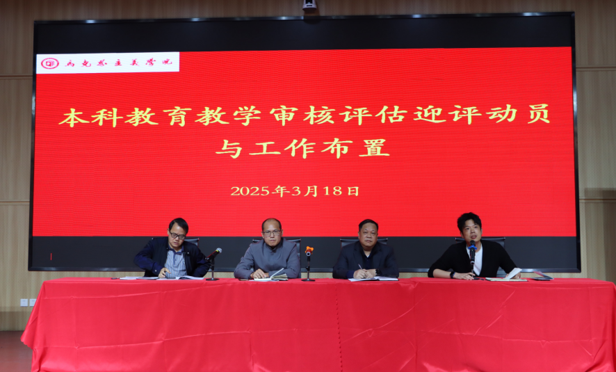 3月18日下午,学院在北教103教室召开本科教育教学审核评估迎评动员会,对迎评相关工作进行再动员再部署。学院领导班子以及全体教职工参加会议。